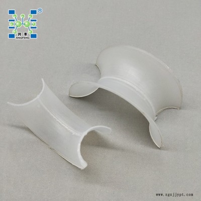 塑料矩鞍環(huán)填料的平滑弧形側(cè)面在填料床層內(nèi),增加了填料間接觸的空隙,塑料矩鞍環(huán)填料更有利于氣體和液體在填料層中的流動(dòng)和擴(kuò)散,具有壓降低,傳質(zhì)效率高等特點(diǎn).