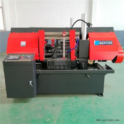 GZ4235全自動數(shù)控金屬帶鋸床是一種以金屬鋸條作為切削工具,并用于切割金屬材料的鋸切設(shè)備,主要用于黑色金屬的方料。圓料及各種型材的切割,亦可用于切割有色金屬及非金屬材料。由于帶鋸切口窄,切削效率高,因此能耗小,材料浪費少。是一種具有顯著節(jié)能,節(jié)材效果的高效切割設(shè)備。雙立柱帶鋸床主傳動采用蝸輪箱變速,進給采用液壓傳動,工件夾緊采用手動和液壓混合式夾緊,具有結(jié)構(gòu)緊湊,操作維修方便等特點。
