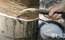 01:40 天然橡膠是怎么生產(chǎn)的, 跟做豆腐似的, 割橡膠樹的刀不錯